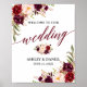 Moderne Elegante Kalligraphie, Watercolor Burgundy Floral Wedding Welcome Poster
