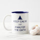 Calm behalten und die Datenstatistiken analysiert Zweifarbige Tasse