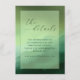 This wedding enclosure card features a serene gradient background transitioning from soft mint to deep forest green, creating a tranquil and natural ambiance. The minimalist design emphasizes clean lines and negative space, with elegant script typography for "the details" at the top and classic serif font for additional information below. The modern aesthetic is enhanced by subtle texture overlays, giving depth to the organic color palette. Perfect for conveying essential event details, this card exudes sophistication and understated elegance, making it an ideal choice for formal wedding announcements.