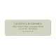 This return address label features a minimalist design with a solid, muted green background and centered text in an elegant serif font. The layout is simple and balanced, utilizing ample negative space to highlight the legibility of the black text. Perfect for those who appreciate modern, understated aesthetics, this label conveys a sense of calmness and professionalism. Its clean lines and classic style make it ideal for formal correspondence or special occasions where a touch of sophistication is desired.
