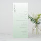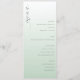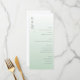This wedding menu features a minimalist and elegant design with a soft pastel green background, creating a serene atmosphere. The layout is clean and balanced, with the word "menu" in a stylish cursive font at the top left, while section titles are in uppercase sans-serif on the right. Each course is clearly listed with ample spacing for easy reading, using black text that contrasts beautifully against the light backdrop. The overall mood is calm and refined, perfect for a formal dining experience, emphasizing simplicity and sophistication through its use of typography and color palette.