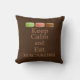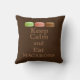 Kopfkissen in Limonen, Erdbeeren- und Schokoladenmotiven, die die klassische Botschaft "behalt Ruhe" begleiten