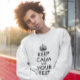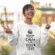 Entwerfen Sie Ihr eigenes "Behalten Ruhe und Text" Textdesign mit einer schwarzen Krone. С з о д с а Nachfolger bei Nachfolger als Nachfolger bei Nachfolgerй Klassische schwarze Typografie gegen ein weißes Sweatshirt.