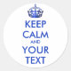 CALM und IHRER TEXT behalten - Weißer Hintergrund Runder Aufkleber