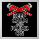 Klempner Spaß mit dem Internet-Mitglied "behalt Calm". Überquerte Rohre und der Slogan "Behalt Calm and Plumb On"