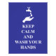 Motivierend Poster für Coronavirus, Covid 19, behalt die Ruhe und waschen Sie Ihre Hände auf blauem Hintergrund mit weißem Schriftart und stich