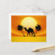 Ein Kamel und Palmen sind bei Sonnenuntergang auf dieser hübschen Postkarte zu sehen