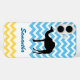Wer hier Lieben Kamele? Dieses Gehäuse ist mit der schwarzen Silhouette eines Dromedar (ein Höcker) Kamel ausgestattet! Der Hintergrund ist ein Zickzack, blaues, gelbes und weißes Muster, das das Bild der Wüste aufrufen soll, mit gelbem Sand darunter und blauem Himmel darüber. Unter dem Kamel ist ein Platz, um Ihren eigenen Namen oder eine kurze Nachricht hinzuzufügen, sodass Sie dieses Element einzigartig machen können!