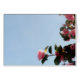 Schöne rosa Kamelien-Blume gegen einen klaren, blauen Himmel. Einfach, friedlich und schön. Anpassbarer Platz für Ihre persönliche Nachricht