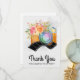 Carte de remerciements de fête avec une aquarelle illustrant une caméra orange avec un bouquet floral et une bande de film ondulé noir et blanc. Le côté arrière a un message que vous pouvez personnaliser.