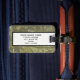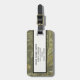 Ein Gepäckanhänger, der einen Tarnungsentwurf kennzeichnet. Personifizieren Sie den Text auf dem bloßen Bereich des Fronteninneres, der im Schwarzen umrissen wird.