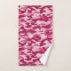 Ces serviettes de bain en camo girly disposent d'un motif camouflage dans les tons rose foncé et rose pâle.