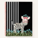 Hier ist ein lustiges Notizbuch-Design mit einem schönen Zebra, in einem Feld von blauen Blumen. Dieses Notebook ist mit einem Softcover oder Hardcover erhältlich. Es gibt sieben verschiedene Papierdesigns, einschließlich Wide Rule, die hier gezeigt werden. Sie haben auch die Wahl zwischen sieben Spiralfarben.
