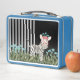 Ce joli zèbre, dans un champ de fleurs bleues, orne l'avant de cette boîte à lunch. Ce design fantaisiste est parfait pour les adultes et les enfants. Cette lunchbox est disponible en sept couleurs, dont le bleu clair, montré ici.