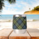 Campbell Wappen Abzeichen umgeben von einem Gurt und Schnalle über Tartan Hintergrund. Benutzerdefinierter Text auf beiden Seiten.