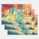 Vintage abstrakte Retro, hippie Camper handwerk decoupage Packpapier Blatt Set von 3. Farbige rote, gelbe, aquamarin grüne Travel Trailer Geschenkpackung. Trendy, antike, coole, groovy, sechziger Stil, böhmische schicke Foto-Kunst. Einzigartiges Design. Bildrecht Marg Seregelyi Fotografie.