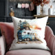 Dekoratorkissen mit Camper am Strand bei Sonnenuntergang. Personalisieren Sie mit Ihrem eigenen Text.
