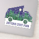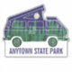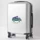 Fügen Sie den Namen Ihres Lieblings-Camping-Spot hinzu, um Ihren eigenen Souveniraufkleber zu erstellen oder fügen Sie diesem Kontur-Cut-Aufkleber, der perfekt für die Dekoration Ihres Autos oder Ihrer Ausrüstung ist, jeden beliebigen Text hinzu. Dieser Aufkleber zeigt einen Camper-Fan mit einem Popupzelt auf dem Dach und ist illustriert, wie eine mondbeleuchtete Nacht im Wald auszusehen, mit Vollmond in einem sternvollen Indigohimmel, der auf einem immergrünen Baumbestand leuchtet. Ihr eigener Text erscheint unten in blauer Schrift.
