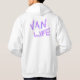Camper van hoody mit van life Slogan. Farbenfrohe Magenta und blaues Muster. Wohnmobil im T3-Stil. Ideal für Campinggäste