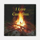 Foto eines Lagerfeuers aus Stöcken, umgeben von Felsen, das gegen dunkle Nacht brennt. Anpassbare Texte lauten "I Liebe Campfire".