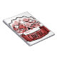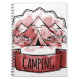 Zelt, Bäume und "Camping" Band. Handgezeichnetes Abzeichen mit roter Aquarellfärbung