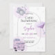 Conçu pour notre collection Camping Bachelorette Party, cette carte d'invitation personnalisable comprend camion de camping violet, caméra, cocktails et polices décoratives. Éléments correspondants disponibles.