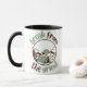 Une tasse à café avec une scène de montagne au coucher du soleil avec une tente posée, avec la phrase "Break from the Grind" centrée autour de l'image. Le design suggère une escapade paisible dans la nature, offrant un sentiment de tranquillité et d'aventure.