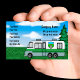 Camping Visitenkarten mit dem Bild eines Freizeitfahrzeugs und Campingplätzen, zusammen mit einem großartigen Text Layout können Sie anpassen.