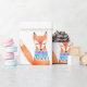 Camping Party Umhüllungspapier mit einem Fuchs mit geometrischen Akzenten.