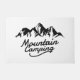 Schönes Design mit dem Bild der Berggipfel und dem Zitat "Camping der Berge". Ein perfekter Treffpunkt für alle Camping-, Wander-, Berg- und Naturliebhaber.