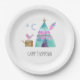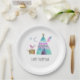 Camping Party Teller mit Camping-Elementen mit geometrischen Akzenten.
