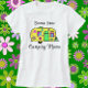 Ein hübscher, hellgelber Trailer, der mit Blume und Herzen geschmückt ist, hat zwei mit Vorhängen verkleidete Fenster. In einem Fenster sitzt eine Tulpe-Pflanze auf dem Fensterbrett. Dieses farbenfrohe Camping Shirt beinhaltet zwei Vorlagen für Text. Der Standardtext unter dem Camper lautet: Camping Mama. Dieser Text ist leicht zu ändern, wenn Sie dies wünschen. Über dem Camper sollten Sie den Standardtext in einen Namen, Initialen oder anderen Text Ihrer Wahl ändern.