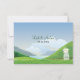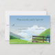 Eine ruhige Landschaft ist der Schauplatz dieser Hochzeitskarte zum Thema Camping. Im Vordergrund steht ein rustikaler Holzzaun, in dem der Schleier der Braut und der Bouquet im Gras liegt. Hinter dem Zaun, der an einem klaren Tag auf einen Bergsee blickt, liegt ein Zelt auf der Wiese. Die Rückseite zeigt die gleiche Szene mit einem Maurerkrug, auf dem ein Etikett mit den Initialen des Paares oder einem anderen Text angebracht wird. Die Namen des Paares und das Veranstaltungsdatum werden oben gedruckt. Ideal für einen Glanz, eine rustikale oder jede Hochzeit im Freien. Verfügbar mit passenden Produkten.