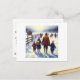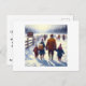 Une famille habillée pour l'hiver se dirige vers un panneau qui les accueille au Canada, avec un sol recouvert de neige et un sentier clôturé. D'autres figures sont vues au loin, créant un sentiment de voyage et d'exploration dans un paysage gelé. Chemin de fer souterrain, vol iranien, avions du 11 septembre, immigrants. Le Canada était l'allié et l'ami proches des États-Unis.