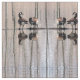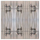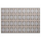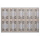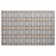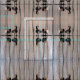 Dieses Tiergewebe weist ein geometrisches abstraktes Muster von wandernden kanadischen Gänsen auf, die in einem flachen Teich sitzen. Die braunen, schwarz-weißen Markierungen spiegeln sich im Wasser wider. Die hellblauen Wasserarme schaffen ein faszinierendes vertikales Design der reflektierten Baumstämme.