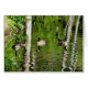 Bernaches du Canada, Branta canadensis, nageant dans de l'eau verte très réfléchissante. La tête et le cou noirs avec "chinstrap" blanc distinguent l'Oie du Canada de toutes les autres espèces d'oies, à l'exception de l'Oie Barnacle, mais celle-ci a une poitrine noire, et aussi un plumage corporel gris, plutôt que brunâtre. L'oie du Canada mesure de 30 à 43 pouces de longueur et a une envergure de 50 à 73 pouces. Les mâles pèsent généralement de 7,1 à 14 livres et peuvent être très agressifs dans la défense du territoire. La femelle a l'air pratiquement identique mais est légèrement plus légère à 5,5-12 livres, et a un klaxon différent. La durée de vie dans la nature des oies qui survivent jusqu'à l'âge adulte varie de 10 à 24 ans Les oies du Canada sont indigènes en Amérique du Nord. Ils se reproduisent au Canada et dans le nord des États-Unis dans une variété d'habitats. Les nids sont généralement situés dans une zone surélevée près de l'eau, comme les cours d'eau, les lacs, les étangs et parfois sur un pavillon de castors. Les oeufs sont pondus dans une dépression peu profonde bordée de matériel plante et de fond. Au cours des dernières années, les populations d'oies du Canada dans certaines régions ont connu une croissance considérable, à tel point que beaucoup les considèrent comme des ravageurs pour leurs dépôts, les bactéries dans leurs dépôts, le bruit et le comportement conflictuel. Ce problème est en partie dû à l'enlèvement des prédateurs naturels et à l'abondance de plans d'eau sûrs et artificiels, comme ceux qui se trouvent sur les terrains de golf, dans les parcs publics et les plages, et dans les collectivités planifiées. En partie à cause de l'accouplement de diverses sous-espèces migratrices avec la sous-espèce giante non migratrice introduite, l'Oie du Canada est souvent une caractéristique de ces environnements urbains qui fait l'objet d'une année entière. Les Bernaches du Canada ont atteint naturellement le nord de l'Europe, comme on l'a démontré par des reprises sonnantes. Les oiseaux sont d'au moins la sous-espèce parvipes, et peut-être d'autres. On trouve aussi des oies du Canada naturellement dans la péninsule du Kamchatka, dans l'est de la Sibérie, dans l'est de la Chine et dans tout le Japon. Comme la plupart des oies, l'oie du Canada est migratrice, l'aire d'hivernage étant la plus grande partie des États-Unis. Les chevaliers de grands groupes de Bernaches du Canada qui volent en formation V signalent les transitions vers le printemps et l'automne. Dans certaines régions, les routes de migration ont changé en raison des changements dans l'habitat et les sources de nourriture. Dans les climats tempérés, de la Californie aux Grands Lacs, une partie de la population est devenue non migratrice en raison d'un approvisionnement alimentaire hivernal adéquat et d'un manque d'anciens prédateurs. Les oies du Canada sont principalement des herbivores, même si elles mangent parfois de petits insectes et des poissons. Leur régime alimentaire comprend la végétation verte et les grains. L'Oie du Canada mange une variété d'herbes sur terre. Il se nourrit en saisissant une lame d'herbe avec la facture, puis en la déchirant d'un bémol de la tête. L'Oie du Canada mange aussi des grains comme le blé, les haricots, le riz et le maïs lorsqu'ils sont disponibles. Dans l'eau, il se nourrit de limon au fond du plan d'eau. Il se nourrit également de plantes aquatiques, comme les algues. Dans les villes, on sait qu'ils ramassent de la nourriture dans les poubelles. On voit souvent des oies adultes diriger leurs oisons dans une ligne, généralement avec un parent à l'avant, et l'autre à l'arrière. Tout en protégeant leurs oisons, les parents chassent souvent violemment les créatures voisines, des petits oiseaux noirs aux humains solitaires qui s'approchent, après les avertir en donnant un bruit de baisers et attaqueront ensuite avec des piqûres et des claques d'ailes si la menace ne se retire pas ou n'a pas saisi un gosling. La plupart des espèces qui se prélèvent sur les oeufs prendront aussi un gosling. Bien que les parents soient hostiles aux oies inconnues, ils peuvent former des groupes de nombreux oisons et quelques adultes, appelés crèches.