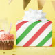 Streifen in leuchtendem Rot und Grün auf weißem Papier, auf der Diagonale, für einen Bonboneffekt