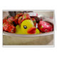 L'adorable canard sort de ce bol de bonbons.