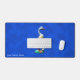 Un canard en bois peint et sculpté avec son canard, lourdement patiné, sur un arrière - plan bleu. Ajoutez votre propre texte.