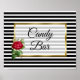 Candy Bar Wedding Sign Rote Rose Poster mit schwarz-weiß Streifen und goldenen Trimmplakat.