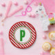 Candy Cane Basics Red/White Monogram Pappteller