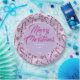 Ein sich wiederholendes Muster an Bonbons auf einem lila Beerenhintergrund