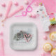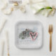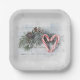 Weihnachts-Kerzenherz und Kiefernzweig auf silberner Schneeflocke.