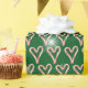 Weihnachts-Süßigkeiten und leuchtende weiße Sterne auf grünem Hintergrund. Die Hintergrundfarbe kann geändert werden.