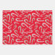 Niedliches Zuckerrohrmuster ist auf diesen Verpackungspapierblättern festlich. Jedes Blatt zeigt das Muster auf einem anderen farbigen Hintergrund an. Rot, Mond und Grün. Diese Weihnachtsfeiertage Geschenkpackung wird Ihre Geschenkpräsentation whimsical und Spaß machen.