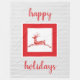 Feierliche Flitterdecke, mit einem Rentier aus Zuckerrohr in der Mitte, auf einer weichen, hellgrauen Decke mit dünnen weißen Streifen. Design wie gezeigt sagt Happy Holidays, aber Sie können den Text anpassen, einen Namen hinzufügen, oder einfach nur leer verlassen. Diese Fleecedecken sind die weisesten. Erhältlich in drei Größen.