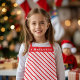 Feiern Sie Weihnachten im Stil mit einer festlichen Zuckerrohr gestreift Schürze, mit Namen, oder klar. Rote Band ist auch editierbar.