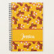 Ajoutez votre nom sur ce sucre de canne enveloppé d'arc rouge sur un motif arrière - plan orange.