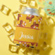 Fügen Sie Ihren Namen auf diesem Zuckerrohr mit rotem Bogen auf orangefarbenem Hintergrund.