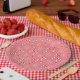 Niedliche rosa Holiday Papier Teller mit einem Bonbons und Schneeflockenmuster . Auch in blau und grün verfügbar. © ArianeC Illustrations-Alle Rechte vorbehalten